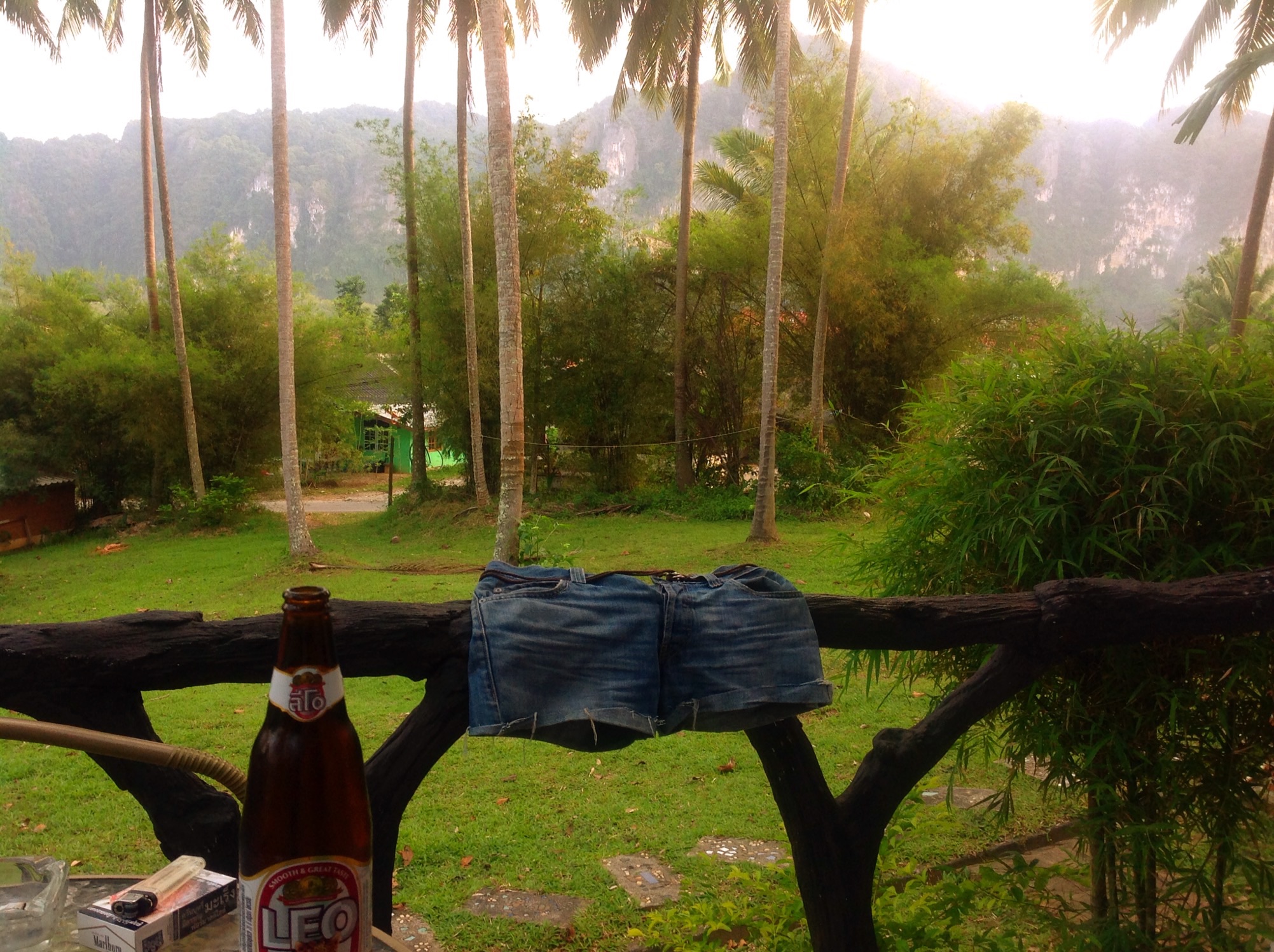 The shorts and Paul are taking a well earned rest before hitting the town – ‘Ouch’ Nang’ – The Blackpool of Southern Thailand!
