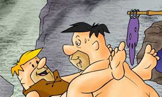 ‘Wilma’ and ‘Betty’ looked on stony-faced , as their primitive partners displayed their antediluvian exuberance for all to see.