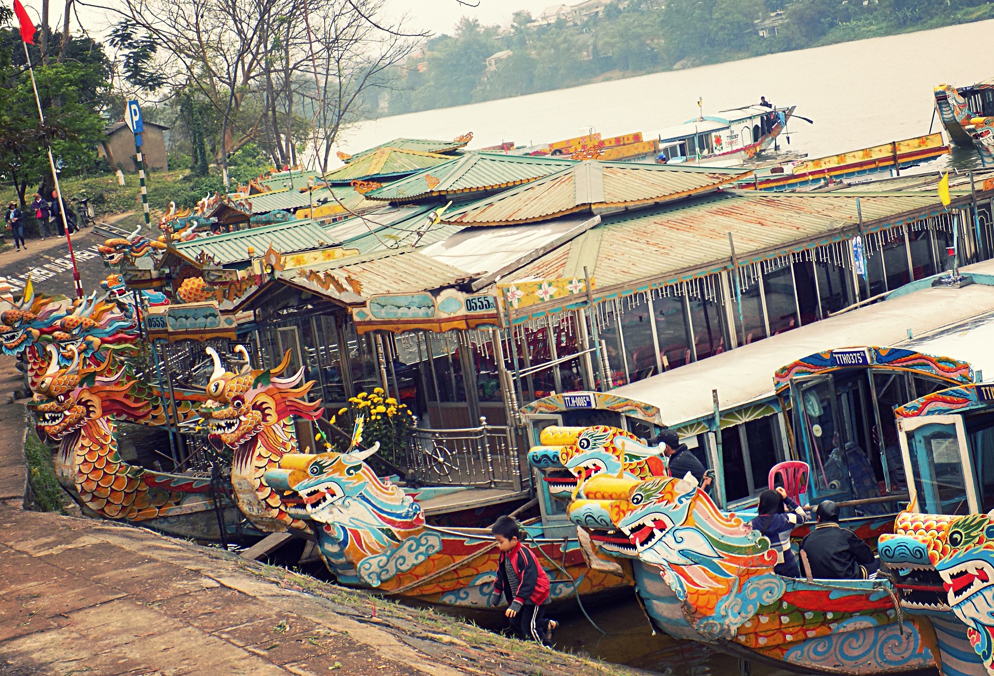 I sat at a small table, looking out over the ‘Perfume River’ which today looked particularly unfragrant and colourless. Hue had a very grey hue!