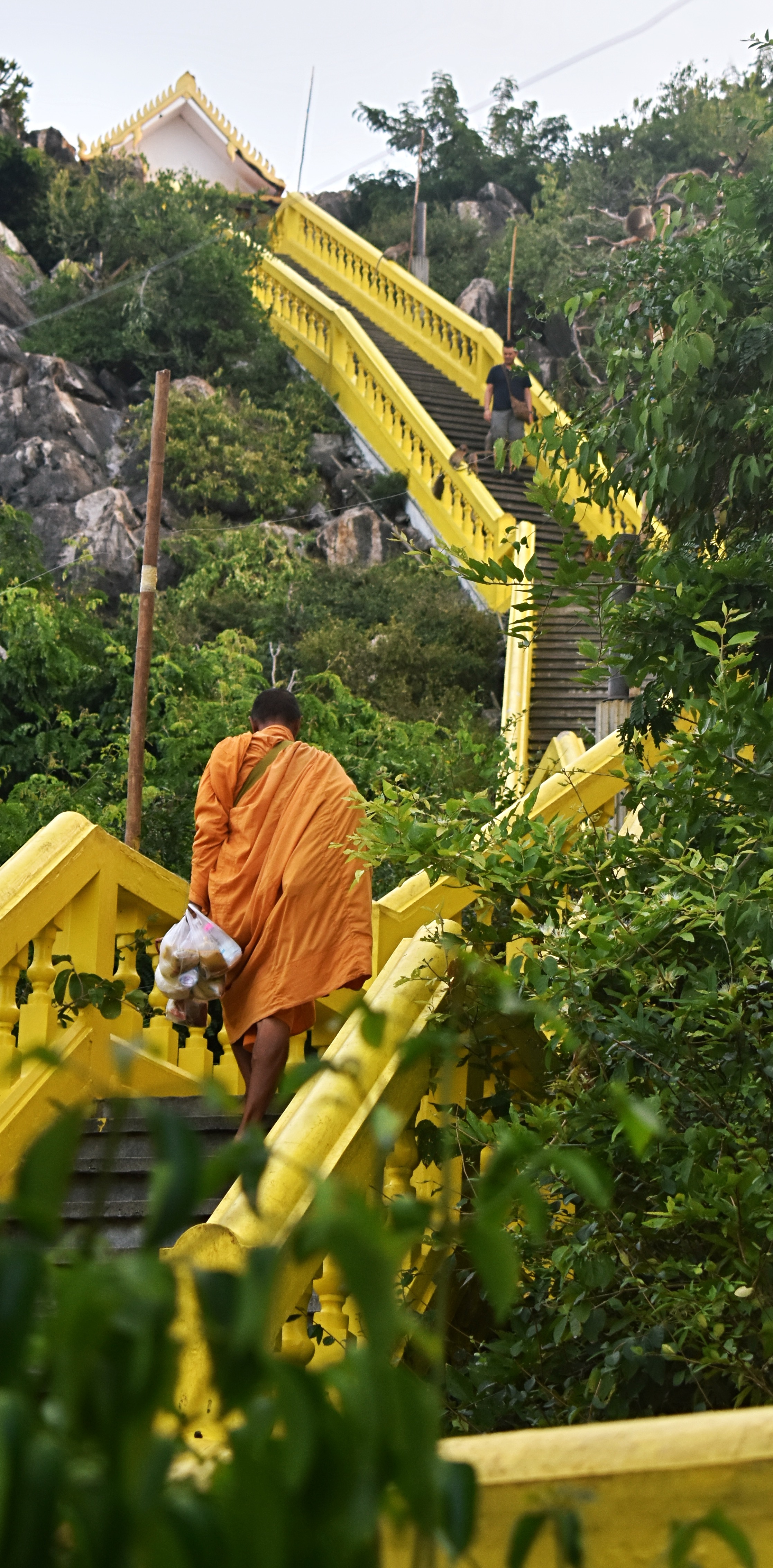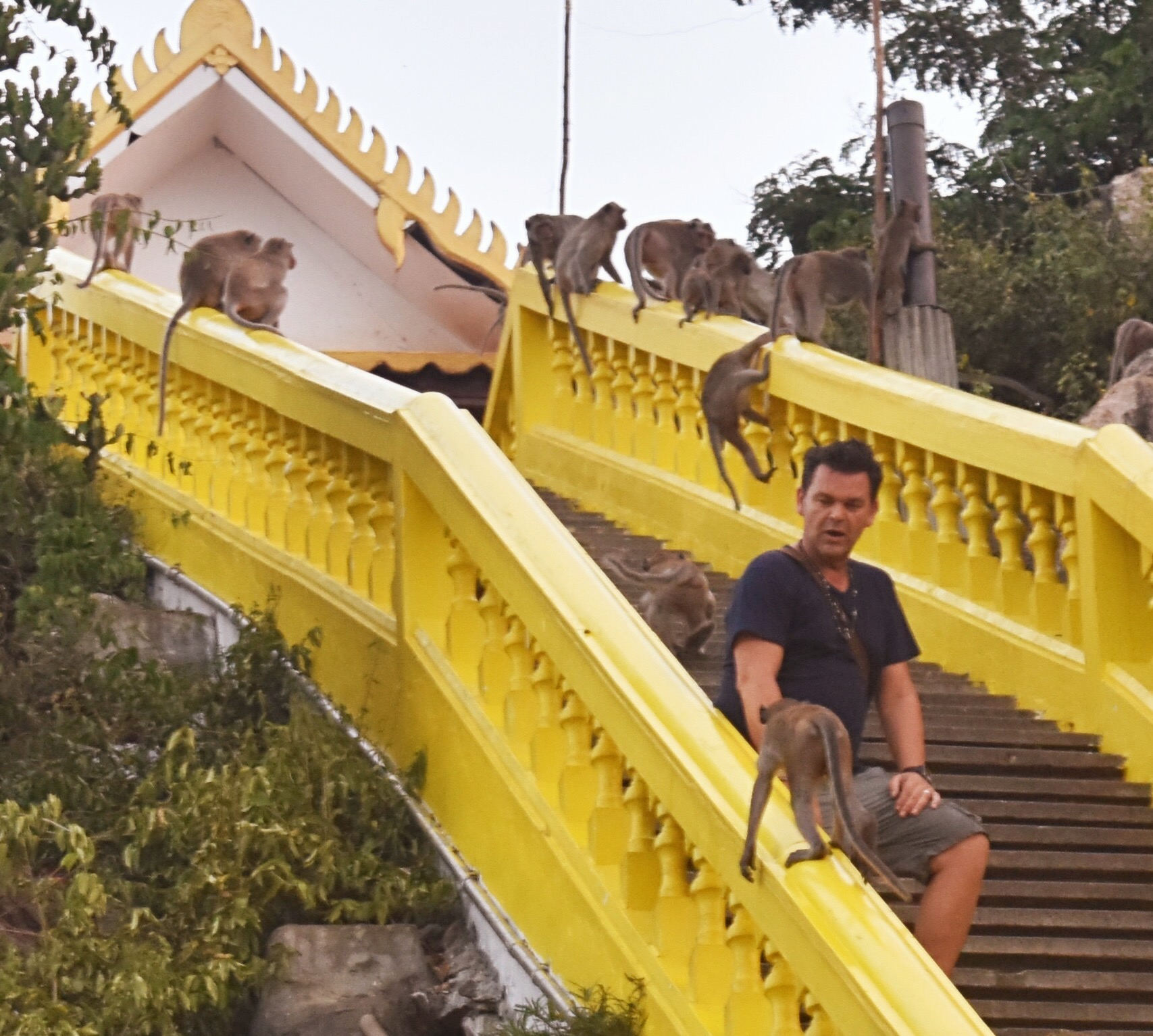 Or rather – monkeys. Because the particular shrine they were climbing towards had been taken over by two types of that primitive primate.