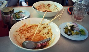 ’Kop Khun Krap’ he replied, the gentlemen’s version, and made straight for the gentlemens. He was just in time as the noodles had now truly awakened. It wasn’t pleasant.