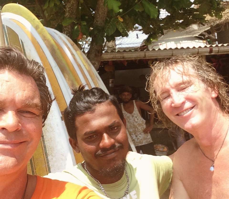The Lola Boys had then moved on to the small beach town of Unawatuna.  A very close drive in a tuk tuk – though their hapless chauffeur had no idea where they were going and had driven them round and round the paddy fields until Paul felt as though he’s been working in one of them for a day and a half. They eventually rolled up at the ‘On Time Villa’ thoroughly not on time. He and Andrew feeling almost late!